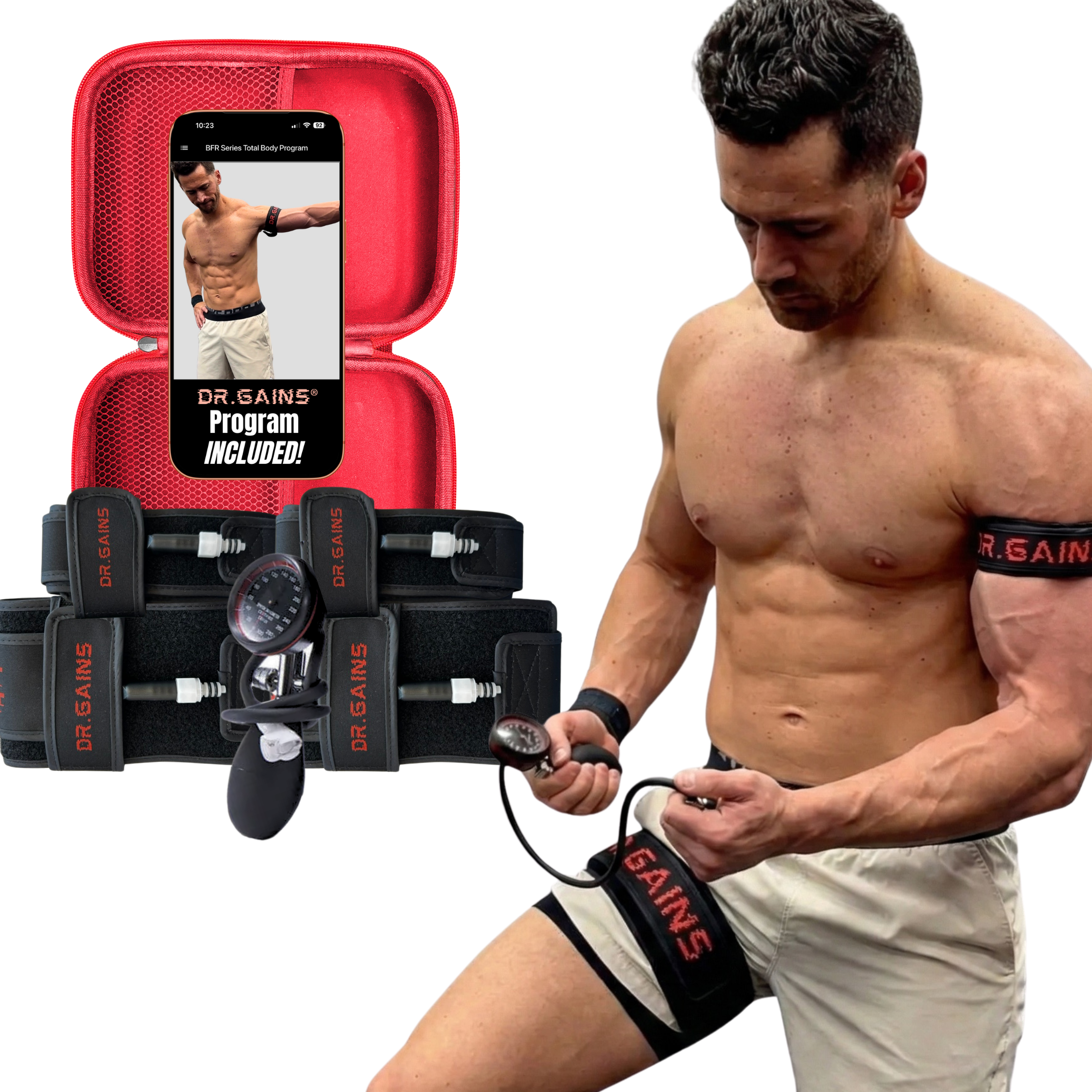 If you're ready to dive in to therapeutic-grade blood flow restriction training and secure absolutely all of the benefits that this technology can offer, then you'll want the Dr. Gains Professional-Grade Inflatable Blood Flow Restriction Cuffs, which are now also available for purchase on Amazon! And with these you can choose between purchasing 2 arm cuffs, 2 leg cuffs, or a full set.