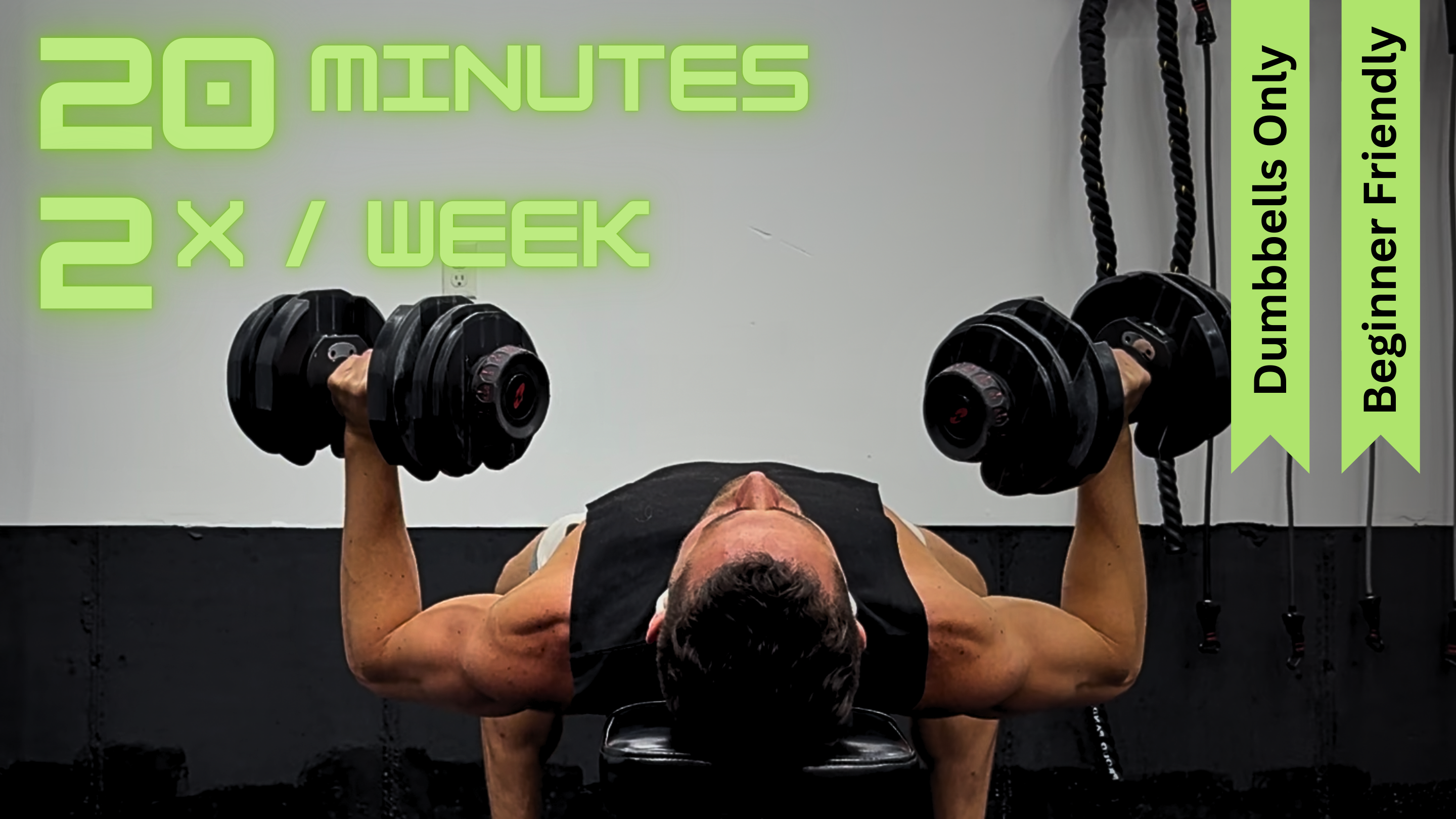• Transform your body in just 2 WORKOUTS per week of 20 MINUTES each, using only DUMBBELLS and a bench!